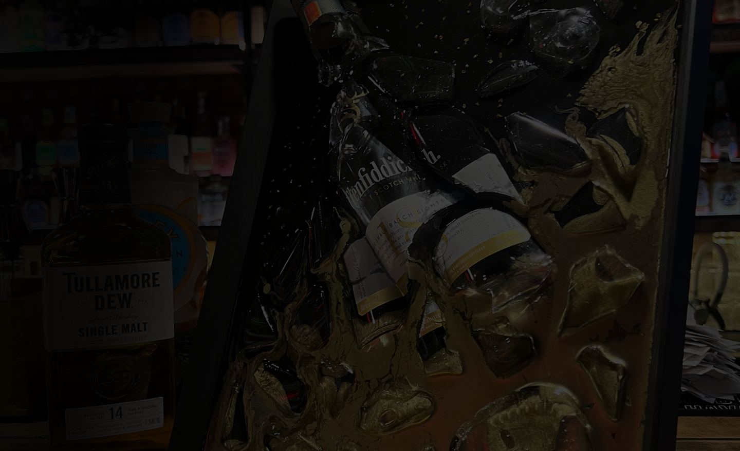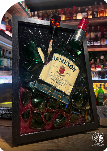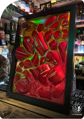 Afterglass tworzy obrazy artystyczne z recyklingowanego szkła. Produkt końcowy nie jest powiązany z promocją napojów alkoholowych.
